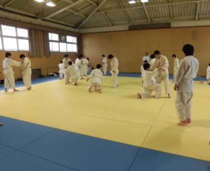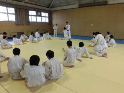 28日(木)、3年生男子が格技室で柔道の授業をしていたので、のぞいてみました。「黒帯を持っていますよ。」と、言いに来てくれた生徒もいました。投げ技の練習をしていました。