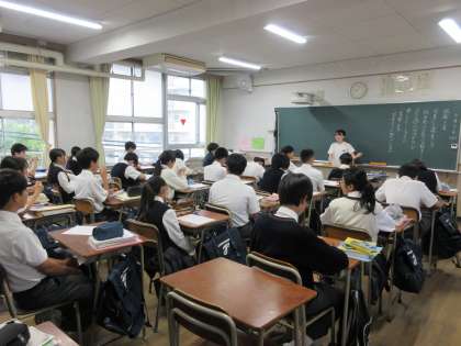 本日、1限目に2年1組において、国語の西田先生の研究授業を行いました。