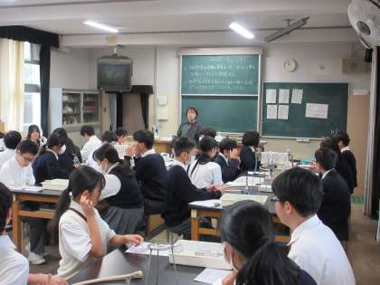 本日、3限目に2年4組において、理科の遠藤先生の研究授業を行いました。