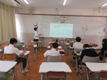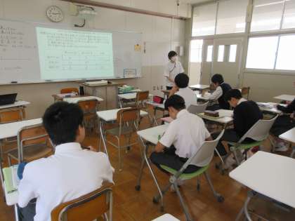 本日、1限目に2年5組において、数学科の山岡先生の研究授業を行いました。