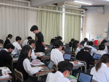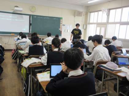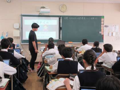 本日、2限目に2年5組において、社会科の築地先生の研究授業を行いました。