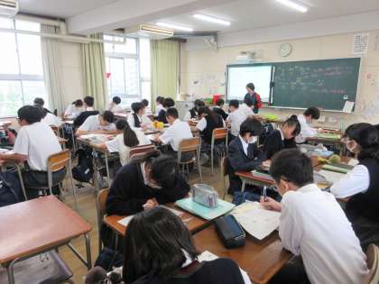 〈写真下〉2年5組(数学)