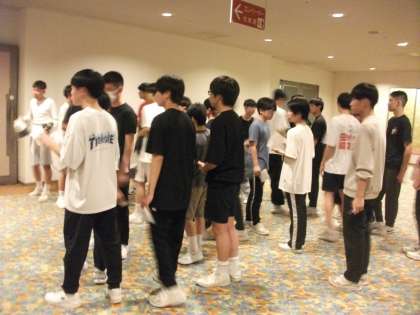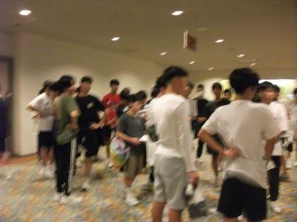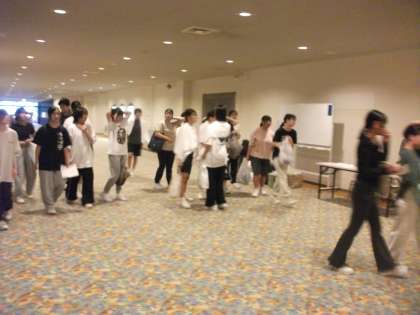 お風呂をすませた、後半のグループが夕食会場に集まって来ました。