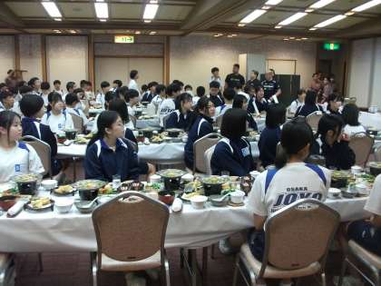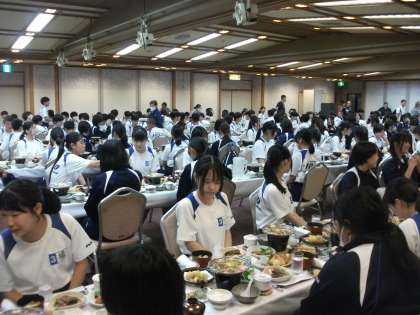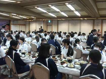 夕食会場に着席しました。