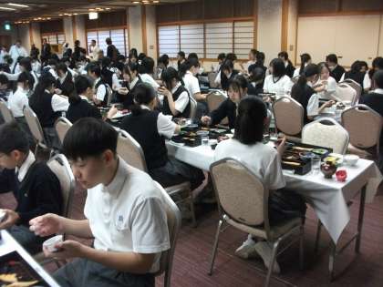 係の号令に続いて、朝食の開始です。