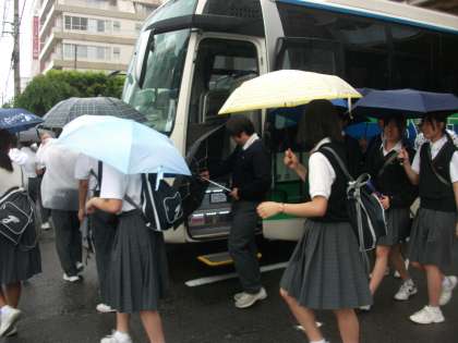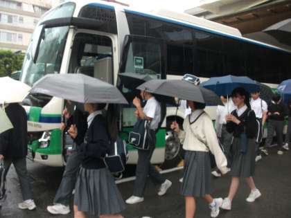荷物をバスに積み込んだら、高知城に向けて出発です。
