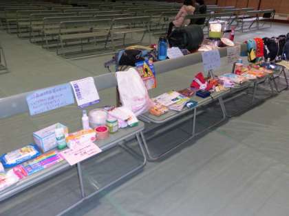 20日(土)午後から、城東小学校で5校PTAの研修会を行いました。内容は、大阪府寝屋川水系改修工営所から講師を招き、城陽中学校区における水害被害について学びました。防災グッズ展示コーナーでは、Gパンが紐で簡単にリュックサックに早変わりするGパンリュックサックなどの展示もありました。