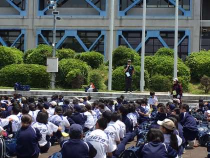 集いの広場で入所式を行いセンターの方からお話を聞き、