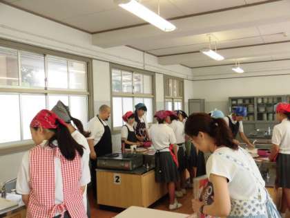 写真は、保育・サッカー講座・英語でクッキングの授業風景です。