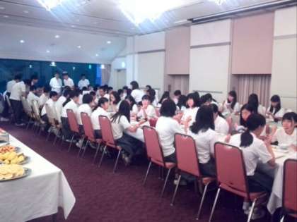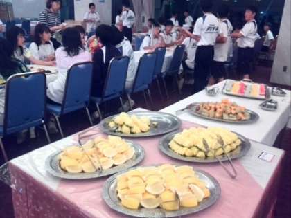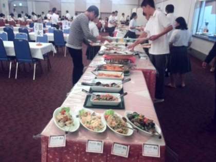 二日目の夕食です。今日は、バイキング形式です。サーモンの刺身が一番人気でした。