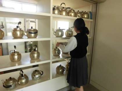 クラスの係生徒が、給茶室にやかんを取りに行き、