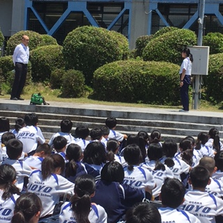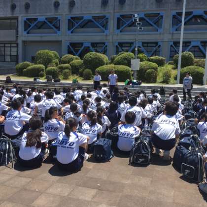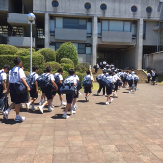 入所式が始まりました。今夜宿泊する青年の城は船の形をしているそうです。館長さんから、「たくさん良い体験をして、良い思い出を作ってください。」とお言葉をいただきました。その後、オリエンテーションを受け、入館です。