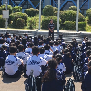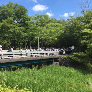 「友情の橋」を渡って野外活動センターへ向かい、野外炊飯を行います。