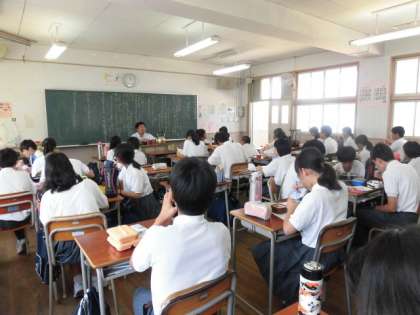 4時間目が終わると昼食の時間です。放送で音楽を聞きながらのお昼ごはん、その後5時間目が始まるまでは自由時間になります。教室でゆっくりしたり、グランドで遊んだりしています。