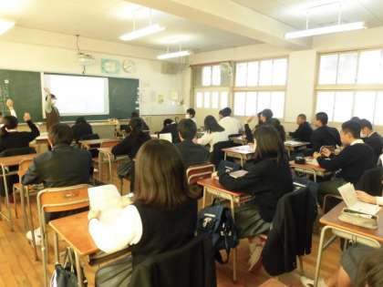 テスト問題解説でプロジェクターを使って問題を前に写し出し説明していました。