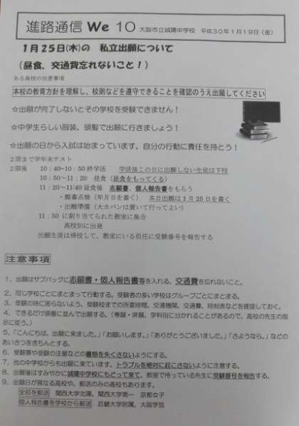 出願の注意を書いたプリントを生徒に渡しましたので、