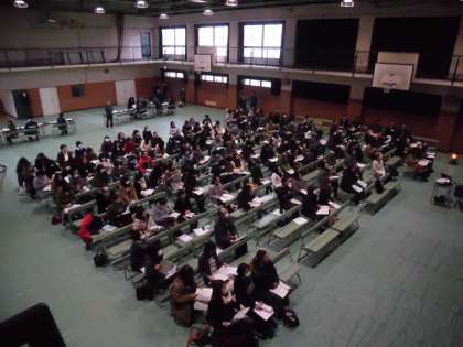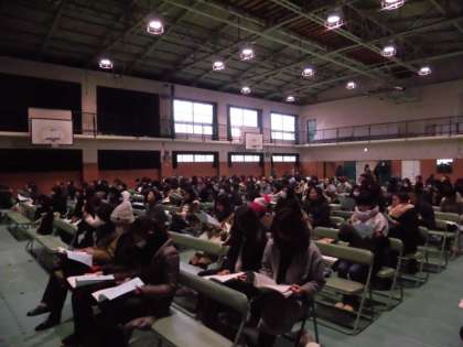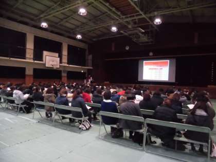 22日(月)放課後、新入生保護者説明会を体育館で行いました。