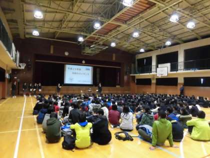 その後、体育館で中学校生活の説明を行い、