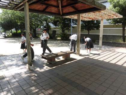 4日(月)6限目、1年生が地域清掃に出かけました。