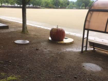 公園の水飲み場がりんごの形をしています。長野県を感じます。