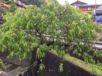 二日目を迎えました。昨日からの雨も上がり曇り空です。この後、どんどん天候は回復して、晴れてくる予報です。はなももの木がありました。小さな実を付けていました。