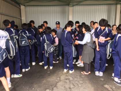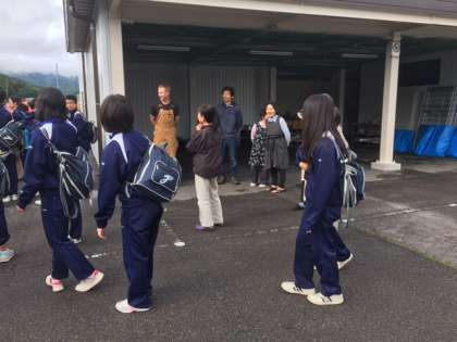 民泊の退村式です。ステイ先の方とお別れです。もう一泊したいという人もいました。