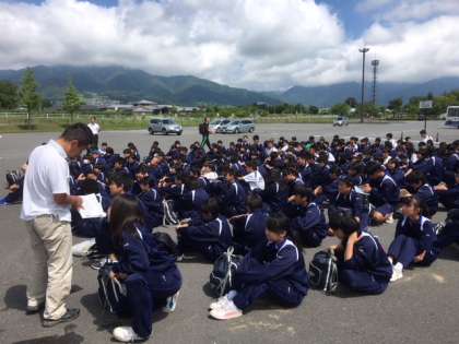 分かれていた、民泊から集合場所に戻り全員集合しました。この後、グループ別アクティビティに出発します。天候は、晴れ、気温も上がってきました。