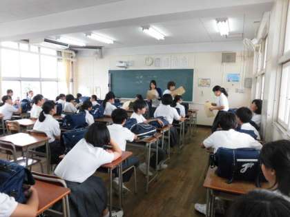 各事業所別に分かれて、職業体験の感想文を持って学校を出発しました。