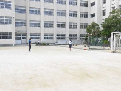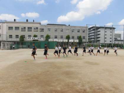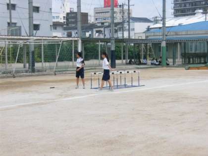 トラックでは長距離練習、グランドの隅では、砲丸投げなどのフィールド競技の練習をしていました。