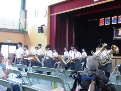 16日(日)、吹奏楽部が、中浜地域の敬老会で演奏を披露しました。