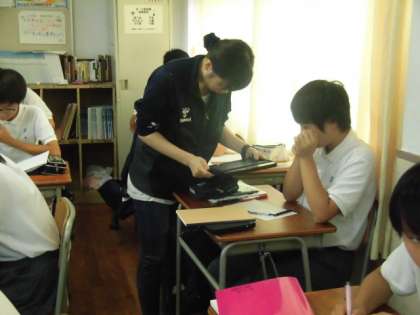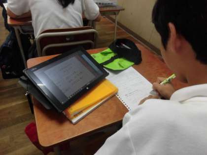 20日(木)、3年社会の授業でタブレットを使っていました。