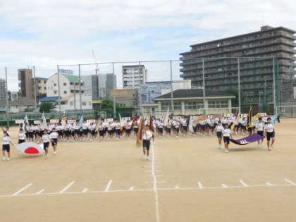 入場行進の練習から開会式、ラジオ体操と続いて行きます。