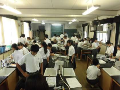 27日(木)、理科室で実験授業をしていたので、のぞいてみました。