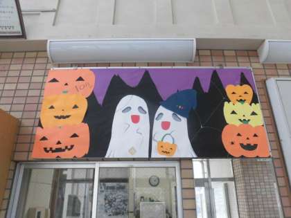 毎月恒例の美術部の作る正門のポスター、10月はハロウィンです。