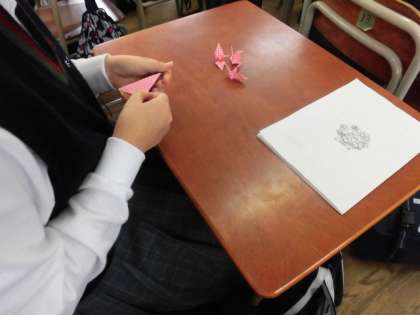 1年生は「ちぎり絵」2年生は「折鶴アート」です。