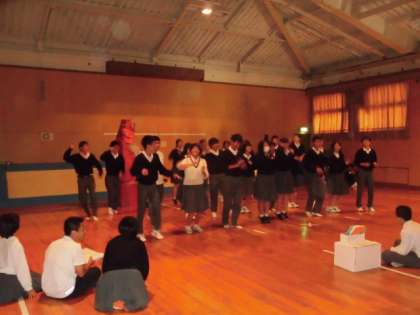 19日(金)、文化発表会で発表する3年生舞台劇を、