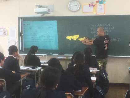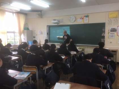 2年生の数学の授業をのぞいてみました。三角形の内角と外角の関係を学んでいました。少人数授業なので教室は、広々と使えます。