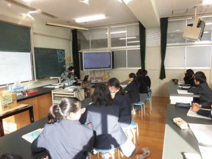 29日(木)、理科室で1年生が授業をしていたのでのぞいてみました。