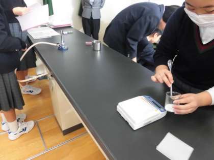 ガスバーナーと電子てんびんの使い方を学習していました。