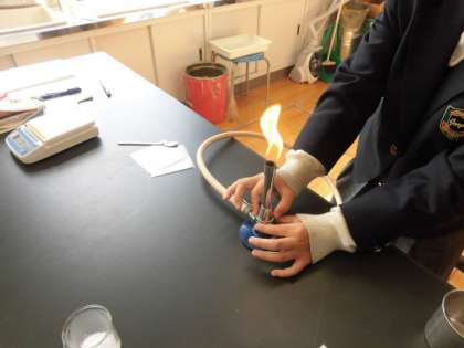 ガスバーナーに火をつけると大きな炎が上がり、びっくりしていた生徒もいました。