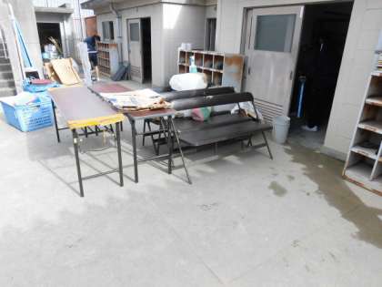 体育館の掃除、プールやクラブ倉庫の掃除などが行われていました。