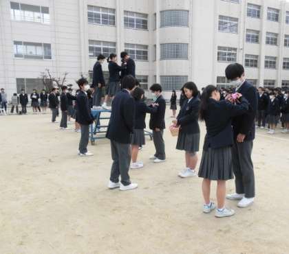 1,2年生から送る言葉、コサージュの贈呈があり、