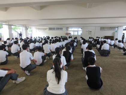 体育館下のピロティで、3年生の学年集会を実施しました。