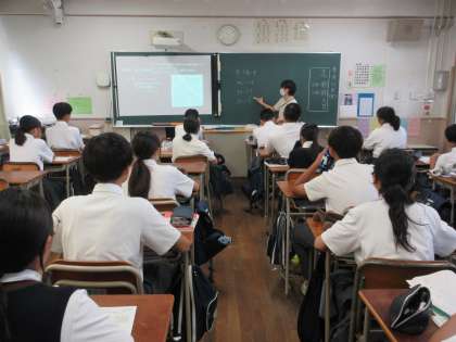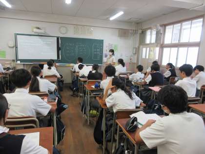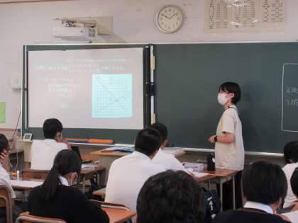本日、2限目に2年1組において、数学の山岡先生の研究授業を行いました。