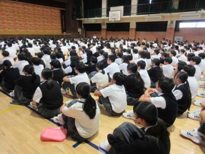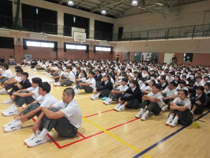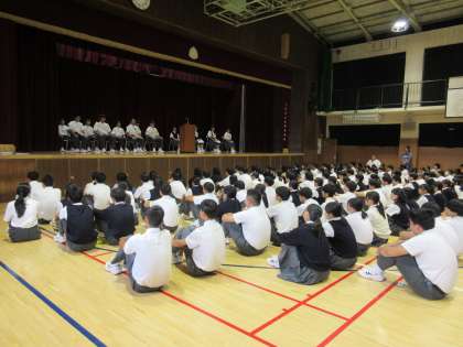 本日、5限目に体育館で生徒会本部役員選挙のための立候補者演説と立候補者それぞれの応援演説の演説会を実施しました。演説会終了後に、学級に戻って、投票となります。