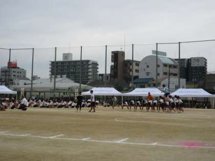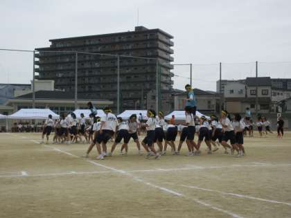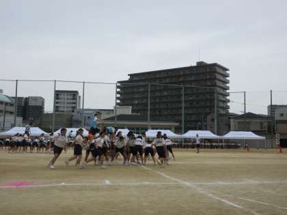 3年生の学年種目「背中渡り(女子)」の様子です。