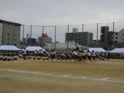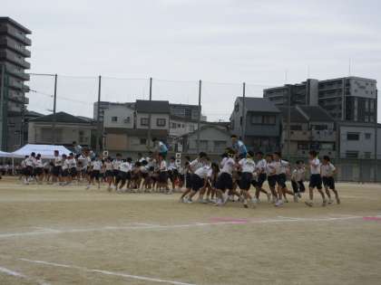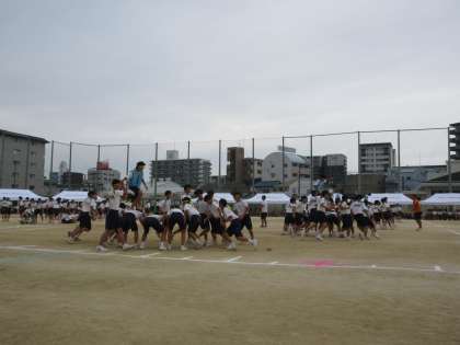 3年生の学年種目「背中渡り(男子)」の様子です。