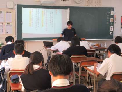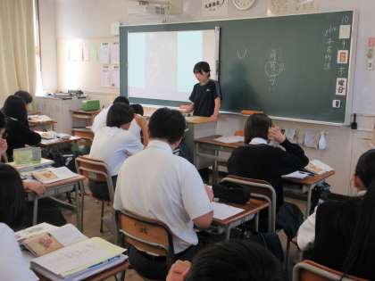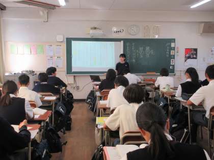 本日、1限目に2年2組において、国語科の西田先生の研究授業を行いました。