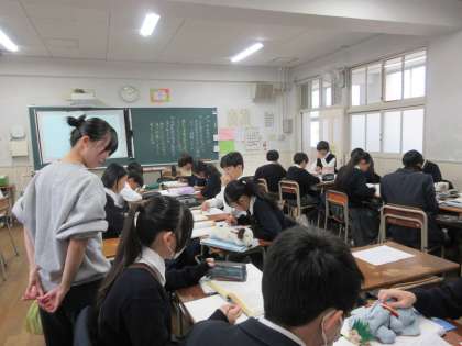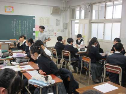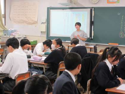 本日、1限目に2年3組において、国語科の西田先生の研究授業を行いました。