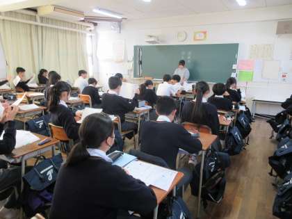 〈写真中〉2年2組(英語)